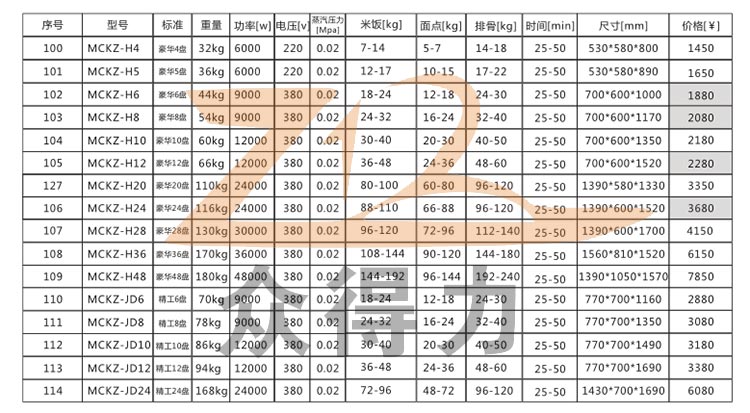 鼎美電熱系列蒸飯柜詳細技術(shù)參數(shù)及統(tǒng)一報價: