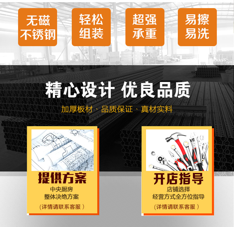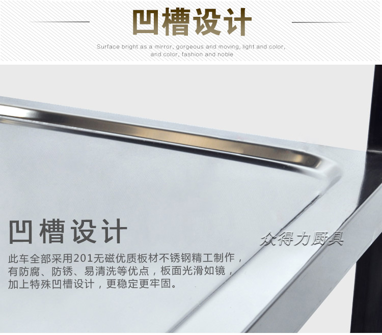 江西眾得力廚具有限公司生產(chǎn)銷售食品機械,商用廚具系列中央廚房設(shè)備,為客戶提供廚房整體解決方案。我司生產(chǎn)銷售的酒水車有大、中、小三種規(guī)格,采用201無磁不銹鋼設(shè)計。外形美觀大方,結(jié)實耐用。深受餐飲酒店客戶青睞