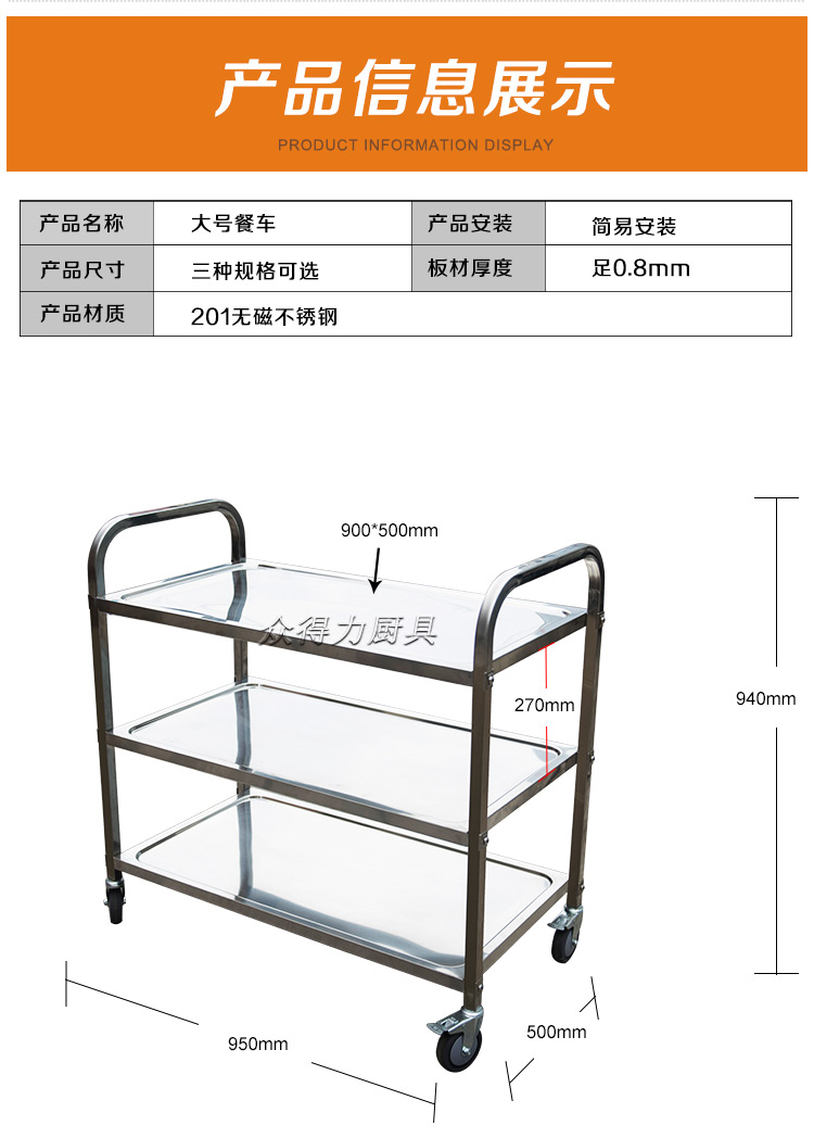 眾得力不銹鋼餐車系列價(jià)格及尺寸: