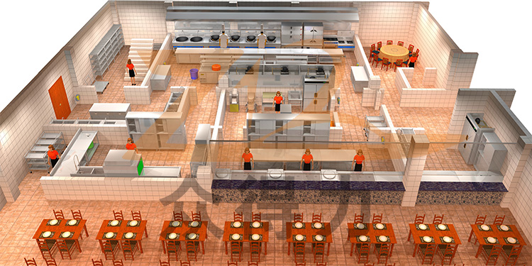 江西眾得力廚具有限公司生產(chǎn)銷售高端廚具,廚房設(shè)備,食品機(jī)械等,承接中央廚房設(shè)備生產(chǎn)、銷售、設(shè)計(jì)、施工、安裝、調(diào)試、培訓(xùn)一站式服務(wù),提供廚房整體3D效果圖,本3D效果圖為政企單位/學(xué)校食堂中央廚房整體效果:涉及的設(shè)備:四層疏條貨架、大炒爐、小炒爐、海鮮蒸柜、蒸飯柜、煲仔爐、湯爐、打荷臺(tái)、儲(chǔ)物柜、組裝式操作臺(tái)、壓面機(jī)、攪拌機(jī)、和面機(jī)、煮面爐、四門儲(chǔ)物柜、保溫售飯臺(tái)、全自動(dòng)洗碗機(jī)、餐車、收碗車、收殘車、洗手池、雙溫冰柜、油煙凈化設(shè)備,排煙管道等系列商用廚具和食品機(jī)械設(shè)備。